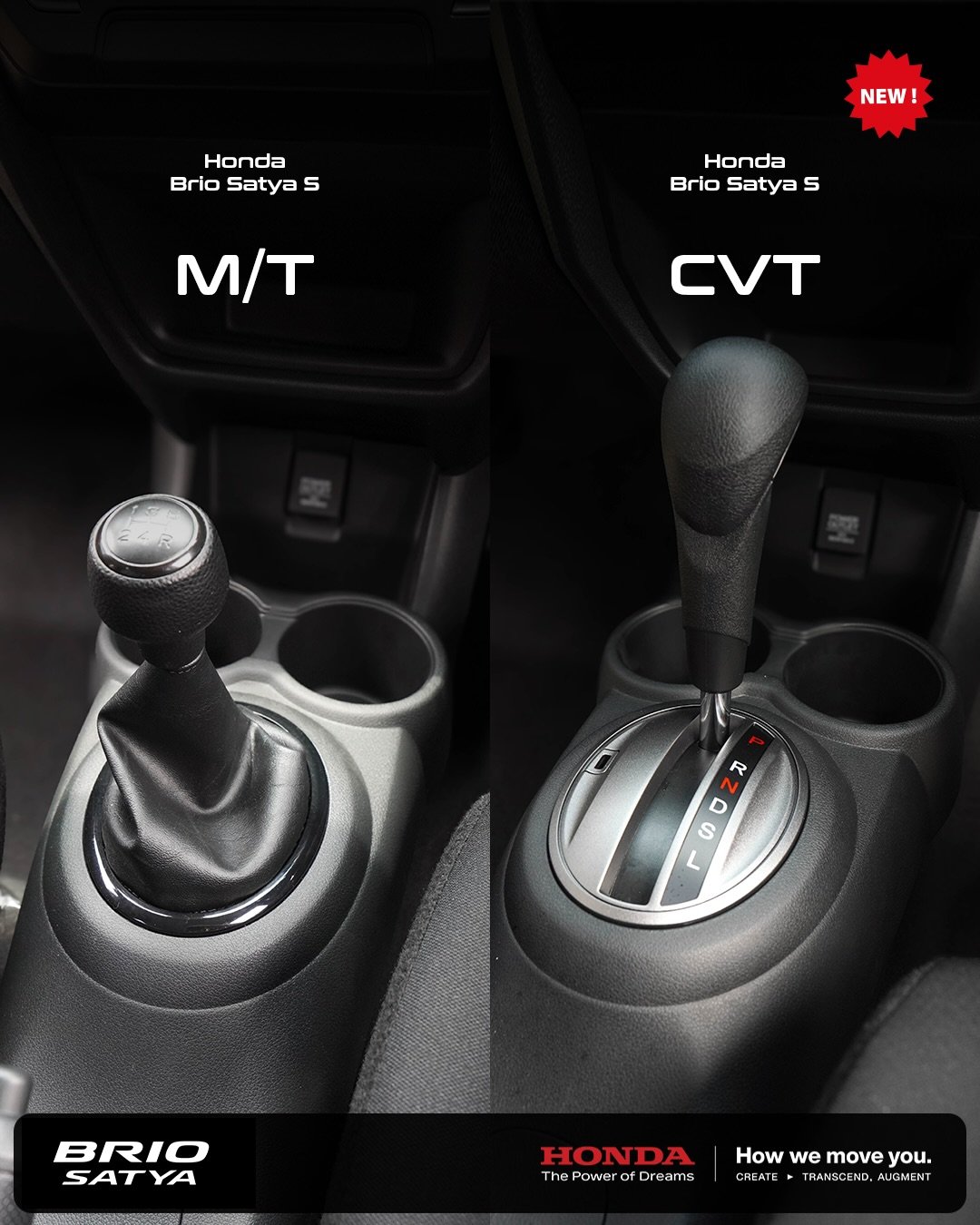 Sebelumnya, tipe “S” pada lini Honda Brio hanya tersedia dalam pilihan transmisi manual. Namun, melihat tingginya kebutuhan kendaraan otomatis di lingkungan perkotaan, Honda menghadirkan inovasi dengan menyematkan transmisi CVT (Continuously Variable Transmission) pada tipe paling ekonomis ini.